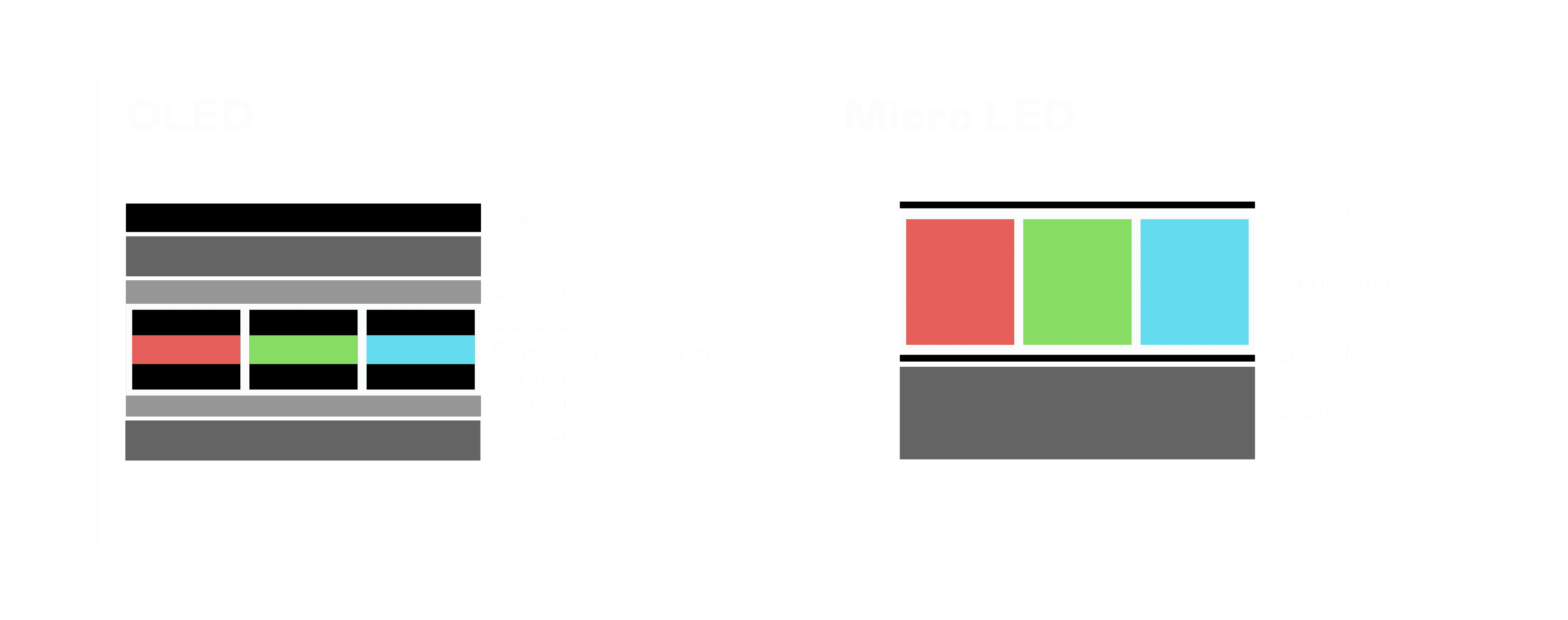 以 LED 做为显示画素,,可让 LED 的发光效率发挥到极致,,,,从而让显示器具备优异的亮度表现,,,不论是在户外或室内,,均具备出众的显示效果。。。同时,,与使用有机材料的 OLED 相比,,,LED 具备更稳定、、、、寿命更长的特性,,,不仅不会有画面烙印问题,,而且更不容易出现故障、、、、坏点。。。。