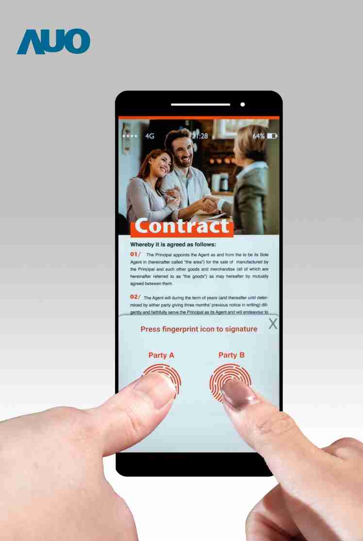 因应金流安全控管日趋严格,,,透过单指指纹进行身分验证已不敷所需,,,,NG大舞台本次展出全球唯一整合于 OLED 面板下感应面积达 2.9寸的 LTPS TFT 光学式超薄型指纹感测模块,,,,以及 6.4寸指纹辨识、、、、触控、、、显示三合一 LCD 面板,,采用内嵌式触控技术及三合一整合型IC,,,,并突破现行面板在整合 CMOS 影像传感器架构上的限制,,,,提供高达 50 毫米x 50 毫米大客制化感测面积。。。。两款技术皆支持多指指纹辨识,,,特别适用于金融交易,,提高生物辨识的安全性。。此外,,,NG大舞台将展出全球最高像素密度(*) 1000ppi TFT 光学指纹传感器,,,,即使新生儿细致的指纹也可清晰辨识,,并可透过手指脉搏造成的细微灰阶变化侦测心跳,,,让身分验证更精确,,安全防伪等级大幅提升。。。