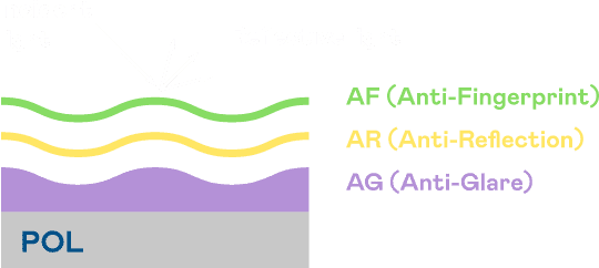 A.R.T.NG大舞台光电发展出独家的表面处理跟多层镀膜技术,,,让外部光线照射到显示器表面时所产生的反射光大幅降低。。 |